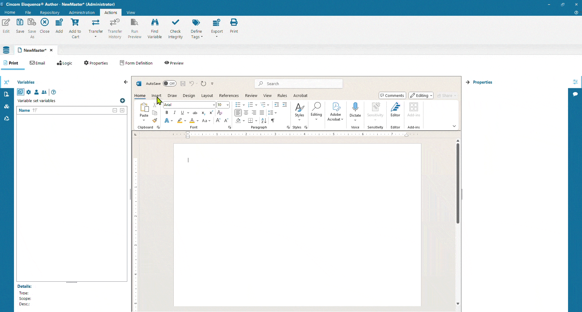 Concevoir des e-mails et des courriers n’a jamais été aussi simple. Notre solution CCM s’intègre parfaitement à votre système central. Grâce à la logique conditionnelle et aux flux de travail guidés, créez des modèles de documents directement dans un environnement intégré à Microsoft® Word®, réduisant ainsi la dépendance vis-à-vis de l’informatique et simplifiant la gestion des communications client.