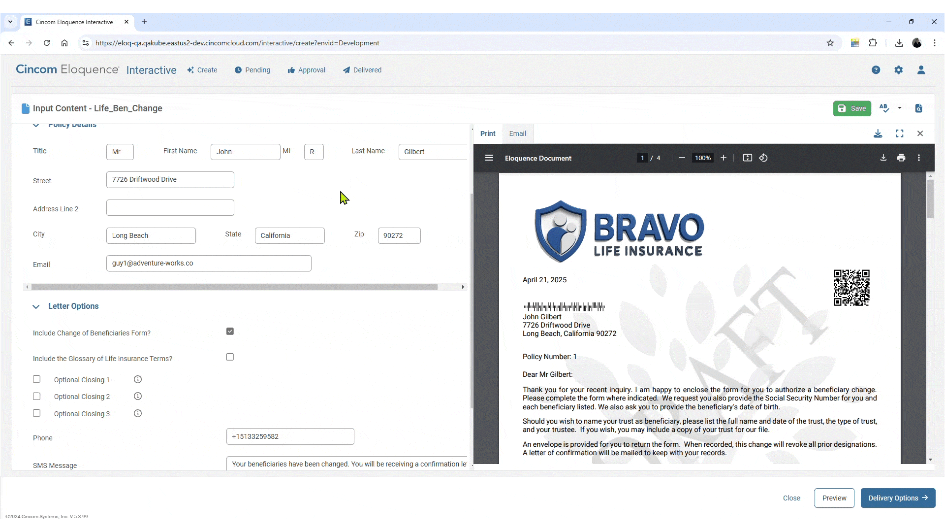 Diffusez vos communications dans de multiples formats, qu’ils soient physiques (Postscript, PDF, AFP, PCL, Word) ou numériques (e-mail, SMS, portail). Le logiciel de gestion des communications clients de Cincom prend en charge le traitement en temps réel et par lots (batch) pour optimiser vos échanges. Vous garantissez ainsi que le bon message parvienne à la bonne personne, au bon moment, tout en réduisant vos coûts.
